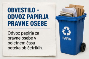 OBVESTILO – ODVOZ PAPIRJA PRAVNE OSEBE