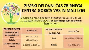 ZIMSKI DELOVNI ČAS ZBIRNEGA CENTRA GORIČA VAS IN MALI LOG